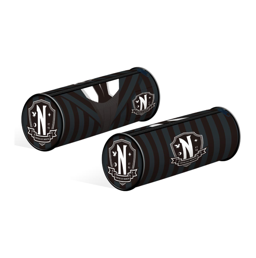 Păstrează-ți rechizitele în stilul școlii Nevermore! Acest penar cu design inspirat de uniforma lui Wednesday Addams este perfect pentru fanii serialului care adoră eleganța gotică.